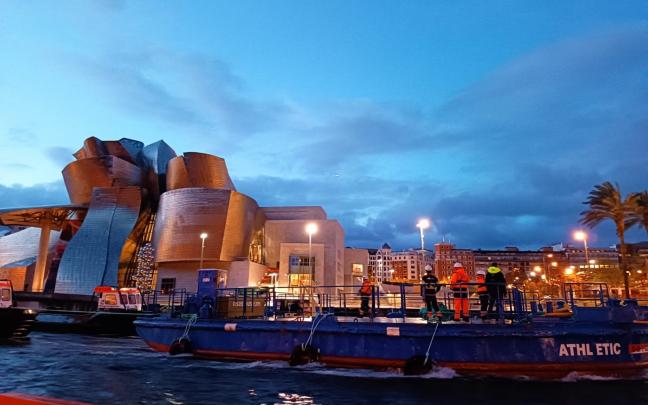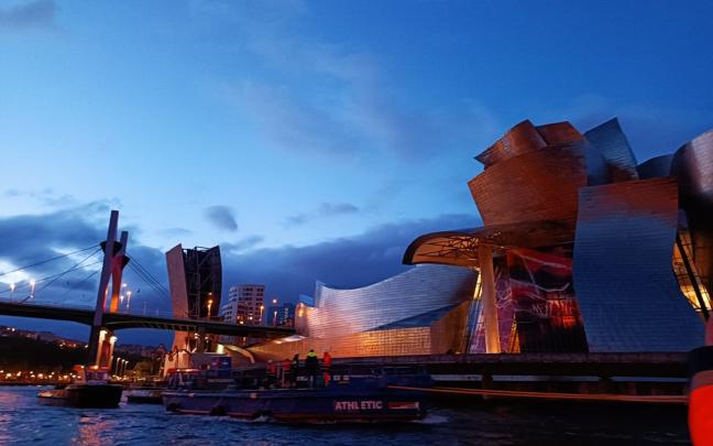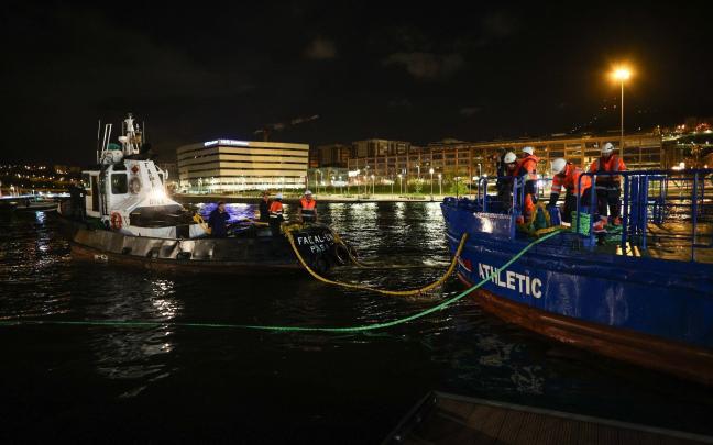 Ha sido una madrugada de ensayos en la ría de Bilbao. La gabarra ha partido desde las 6.15 de la madrugada de Bilbao para comenzar las pruebas que pondrán a punto la embarcación que llevará a la plantilla del Athletic Club hasta Bilbao para deleite y alegría de los aficionados que llenarán, sin duda, los márgenes de la ría. Un remolcador llegado de Pasaia ha sido el encargado de trasladar la barcaza que quedará amarrada en el muelle Bizkaia Norte en las instalaciones de la Autoridad Portuaria.