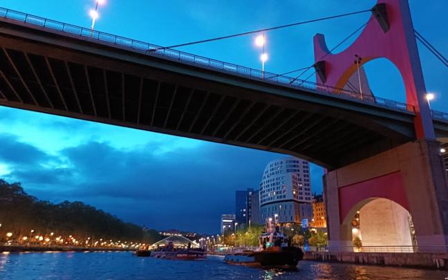 Como nos cuentan nuestros compañeros de DEIA, para las maniobras que se han llevado a cabo a primera hora de la mañana han sido necesarias tres embarcaciones. Por una parte, el remolcador que tirará desde proa, y por otra parte, dos amarradores del Puerto de Bilbao. El remolcador es una unidad especial de Pasaia, con menos altura, ya que es necesario que pase por debajo de todos los puentes.