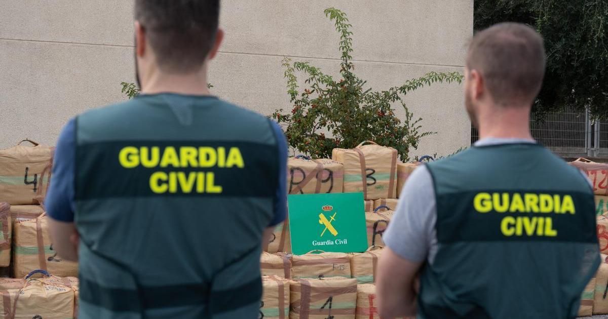 Varios agentes de la Guardia Civil junto al alijo incautado en una operación antidroga