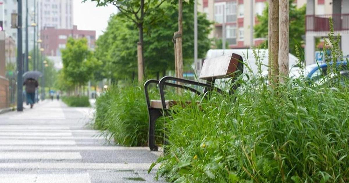 Hierbas altas junto a un banco de la calle Madrid de Vitoria. DNA