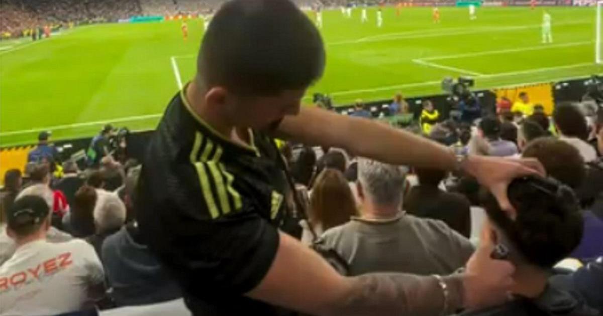 Ya con el 1-2 en el electrónico, con el equipo de Álvaro Arbeloa apretando para intentar darle la vuelta al partido o al menos empatarlo, en las gradas del coliseo madridista se vivió una imagen surrealista que ha indignado y avergonzado a los aficionados merengues y que se ha hecho viral en las redes sociales. Esta vez no se trata de violencia verbal o física entre seguidores, que también sería motivo de bochorno, sino de la actuación de un influencer. En plena grada se ve a dos jóvenes: uno de ellos está de pie con un peine y una maquinilla eléctrica y le está cortando al pelo al que está sentado, absolutamente ajenos a lo que acontece en el césped.
