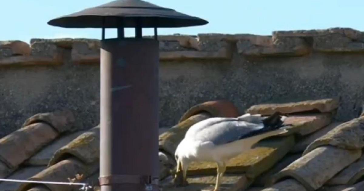 Pero la escena que se pudo ver en pantalla no fue precisamente agradable. La gaviota que aparecía en el encuadre procedió a vomitar un ratón que había ingerido para poder alimentar así a su cría, que también se encontraba junto a la chimenea y que inmediatamente procedió a degustar el manjar que su progenitora le había traído, banquete que disfrutaron ambas mientras llegaba otra que se limitó a mirar, quizá con envidia.