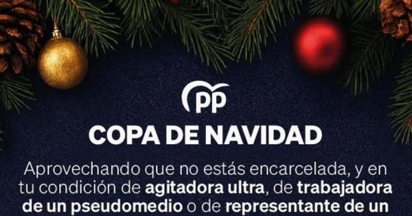 "Aprovechando que no estás encarcelada, y en tu condición de agitadora ultra, de trabajadora de un pseudomedio o de representante de un medio de comunicación", señala el texto, el PP quiere compartir un aperitivo para celebrar "estas fiestas tan señaladas".