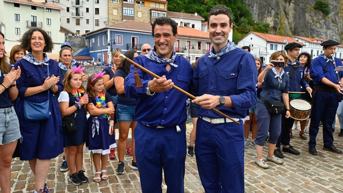 Una vez satisfecha la tradición, llegaba otro de los momentos del día. Fue cuando la comitiva accedió al puerto de Elantxobe hacia la una del mediodía. En esta ocasión, la colocación de barandillas en la dársena minimizó el riesgo de que se repitieran desagradables escenas del pasado, cuando de milagro no hubo graves accidentes entre embarcaciones y bañistas. El dispositivo prefijado –que incluso contó con un helicóptero de la Ertzaintza– y las indicaciones de Jon Ojanguren –ayer coordinador de seguridad en el mar– evitó males mayores. Entonces, y sobre un muelle repleto de personas –aunque nada equiparable a las avalanchas de otros años–, el alcalde elantxobetarra, Patxi Egurro, cedió el bastón de mando de la localidad a Abaroa, otro de los ritos de la Magdalena que se cumple a rajatabla. Nuevamente, la comitiva enfiló por las estrechas y empinadas calles para ser agasajados con un aurresku.