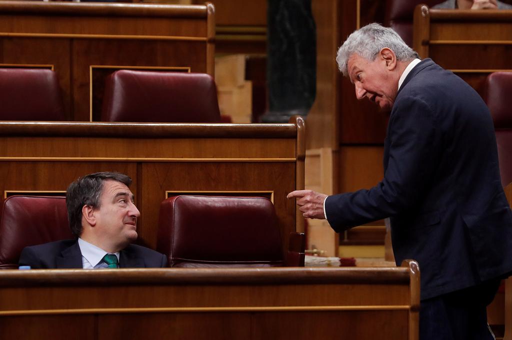 El diputado de Nueva Canarias, Pedro Quevedo, pasa ante el jeltzale Aitor Esteban, en una foto de Efe