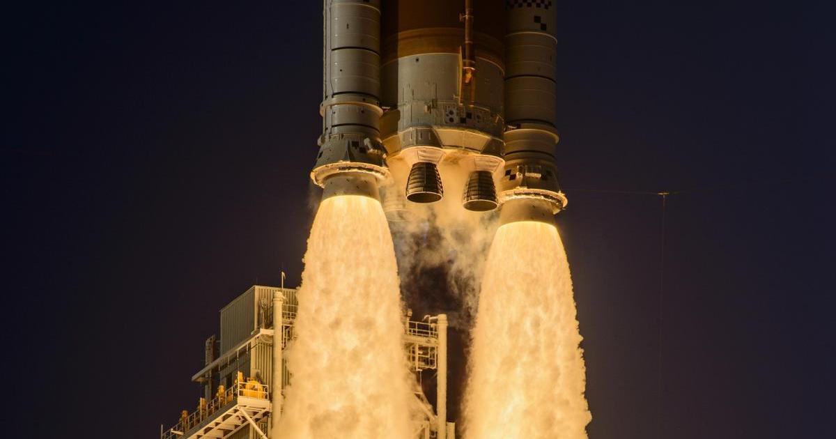 El cohete SLS (Space Launch System) de la NASA y la nave espacial Orion despegaron de la plataforma de lanzamiento 39B en el Centro Espacial Kennedy de la agencia en Florida este jueves a las 00.35 (hora española), enviando a los cuatro astronautas en un vuelo de prueba planificado de diez días alrededor de la Luna y de regreso.