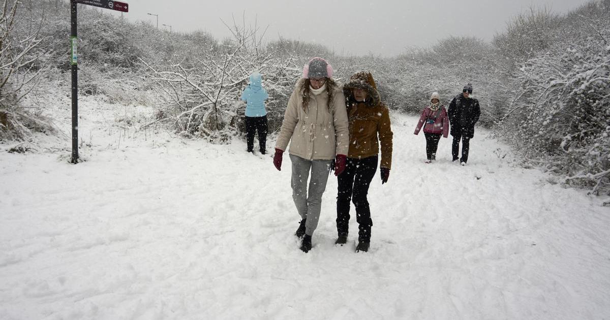 Varias personas disfrutan de la nieve en la calle de Gasteiz / EP