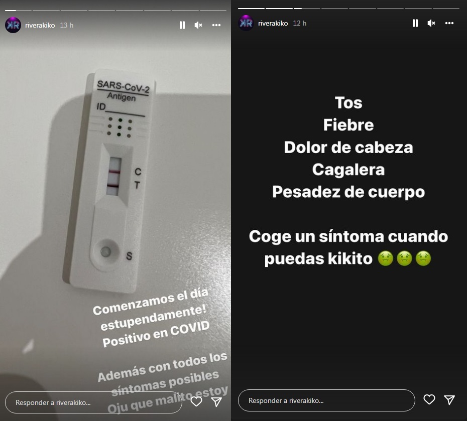 Dos de los stories en los que Kiko Rivera ha explicado cómo se encuentra. Fotos: Instagram (@riverakiko) Después ha añadido unos vídeos desde la cama con la luz apagada y cara de circunstancias relatando sus desgracias. "Estoy más malo que un perro. Vaya diíta que llevo. Me cago en el Cobi, el Curro y el Snoopy. Sus muertos", ha dicho, tratando de hacer una gracia con la covid y "el Cobi".