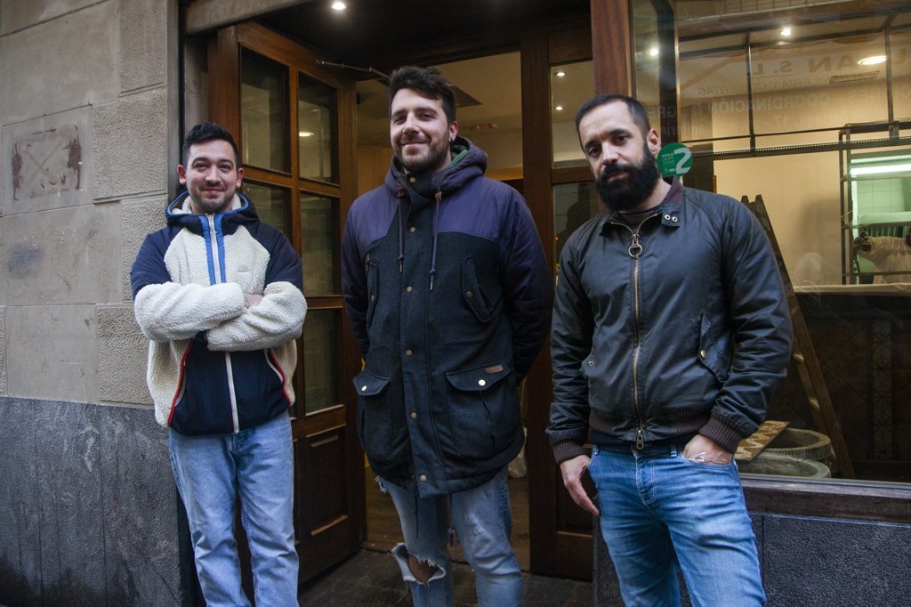 Los tres socios frente al local de la calle Herrería Spritz, Negroni... y muchos vinos
