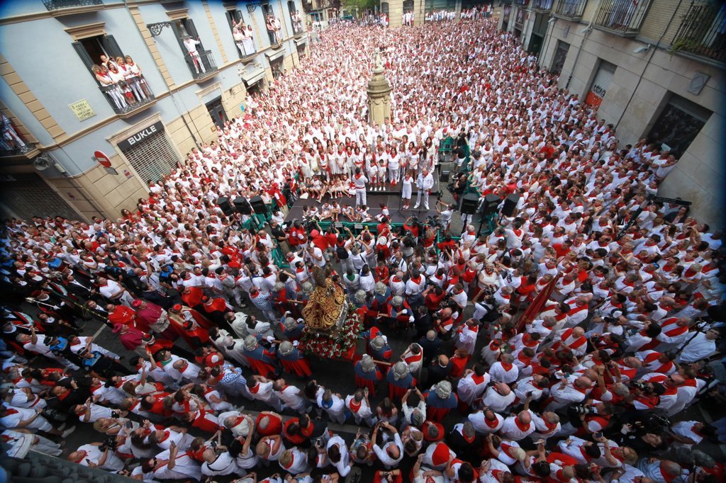 La Ofrenda a San Fermín, el 7 de julio de 2019 en la plaza del Consejo. Foto: Oskar Montero
