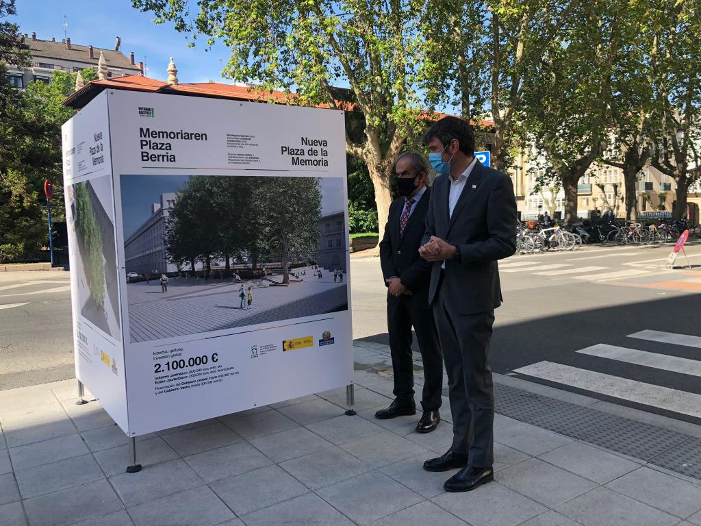 Tal y como indican fuentes del Ayuntamiento de Vitoria consultadas por DIARIO DE NOTICIAS DE ÁLAVA, la nueva plaza de la Memoria, situada entre Correos y el Memorial de las Víctimas, permitirá contar con un nuevo espacio de encuentro peatonal y de calidad en pleno corazón de Vitoria-Gasteiz. El primer edil gasteiztarra ha realizado la presentación de la intervención junto al concejal de Movilidad y Espacio Público, Raimundo Ruiz de Escudero.