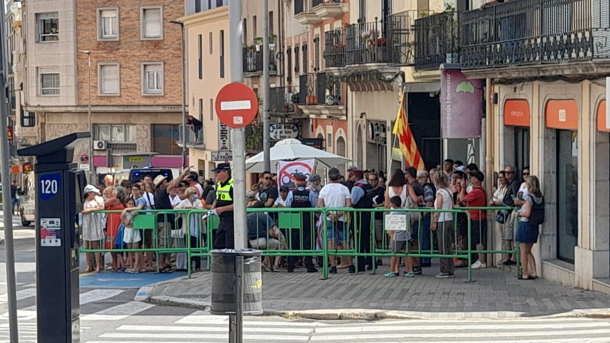 En el otro extremo, se ha concentrado un grupo de independentistas, secundados por formaciones como la CUP, que han gritado consignas como "Fuera los Borbones", "No nos representan", "Somos república" y "Felipe VI, pide perdón". Por delante de ellos han permanecido varias furgonetas de los Mossos para mantener un perímetro de seguridad.