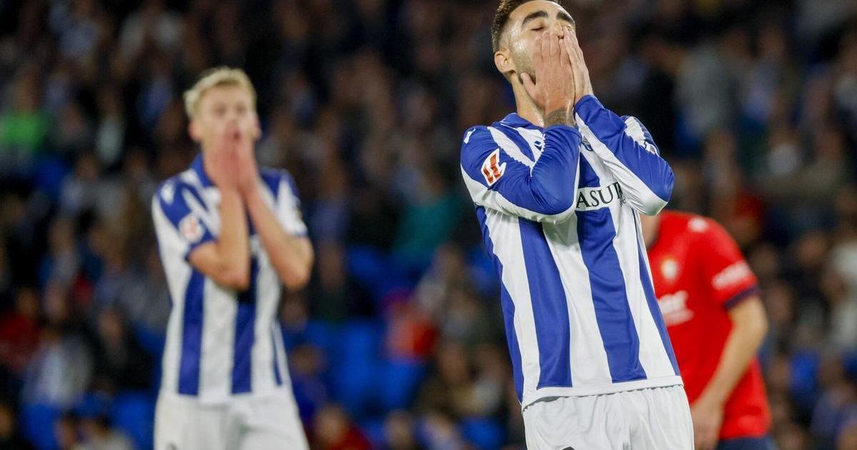 El centrocampista de la Real Sociedad Brais Méndez se lamenta de una ocasión fallada en el Real-Osasuna de Liga de esta temporada. / EFE / JUAN HERRERO