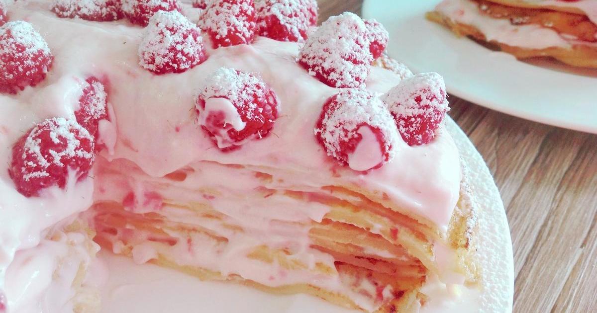 El verano pide frescura, y esta tarta de crepes con crema de frambuesas y queso puede llegar a cumplir cualquier antojo sin encender el horno