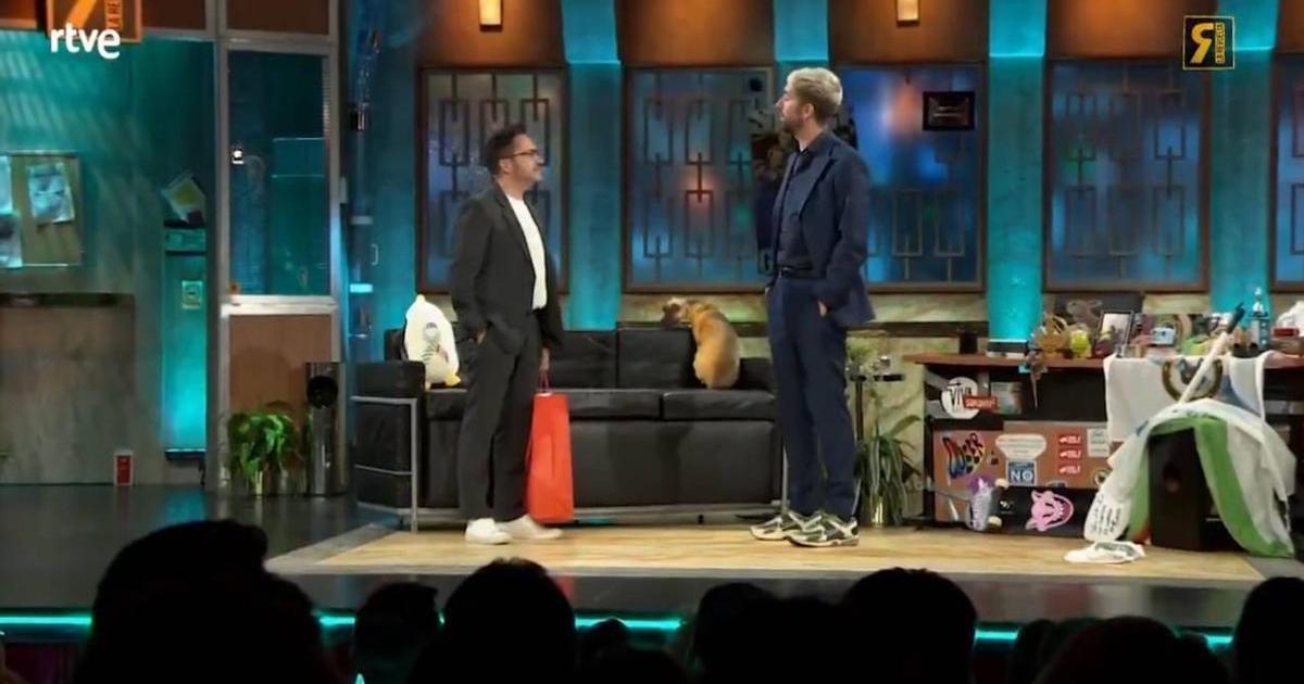 Tal y como así lo pudo vivir la audiencia del programa, a su entrada al escenario del programa, el invitado se comprometía a acudir 'si no este año, el que viene' al Festival de Cine de Calzada de Calatrava, regalaba al presentador varios elementos relacionados con el mundo del terror, en relación con la película Vieja loca. "Y el vacile ha empezado al entregar al presentador una caja de preservativos: 'Como el otro día te pusiste la mascarilla que te regaló Blanca Suárez, he pensado que…'. Pero el gran giro de guion del programa se ha producido cuando el equipo del programa ha avisado a Broncano de que se iba a producir una videollamada inesperada", relataban desde la televisión pública.