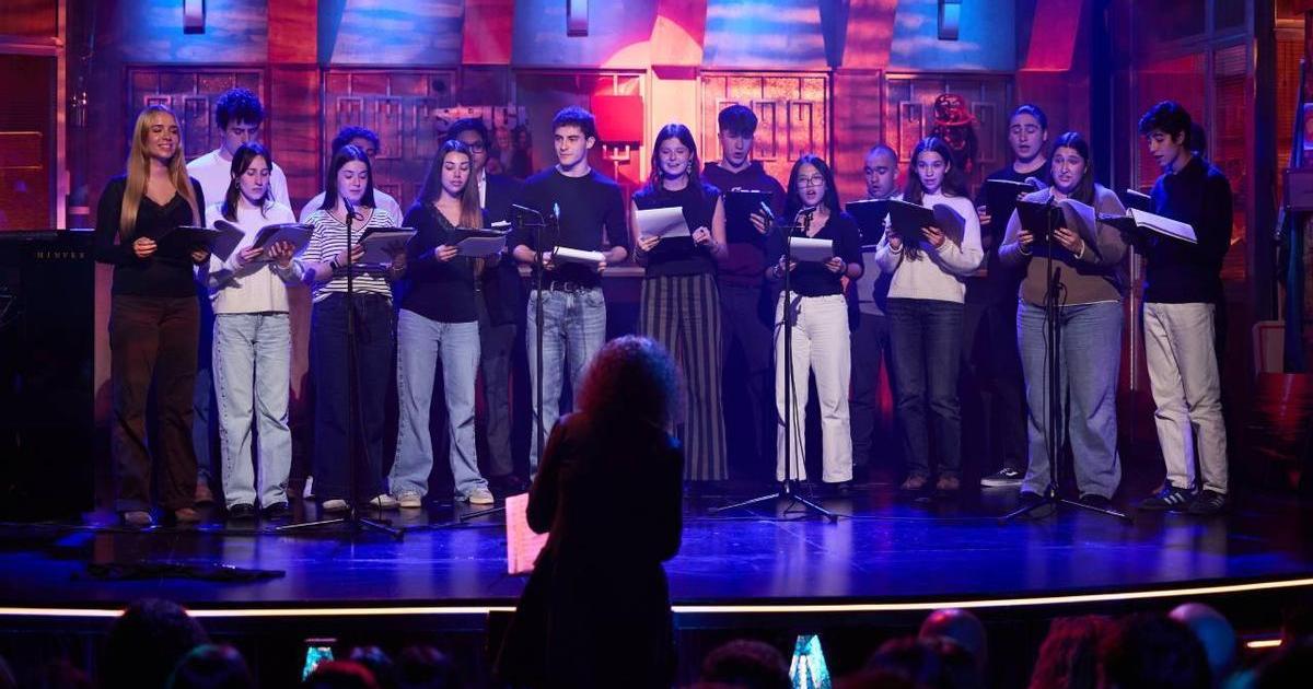 Uno de los momentos televisivos más comentados de la semana ha sido la interpretación del himno de la música en euskera, 'Aitormena' en 'La Revuelta' por parte del coro de 'Los domingos'. Lo hicieron este miércoles, 28 de enero, sobre el escenario del Teatro Príncipe de Gran Vía de Madrid frente a una media de 1.299.000 espectadores de audiencia media y un 9.9% de cuota de pantalla. Una interpretación de lo más emotiva que hico que, desde el propio programa, se rindiesen a la misma: "En pie".