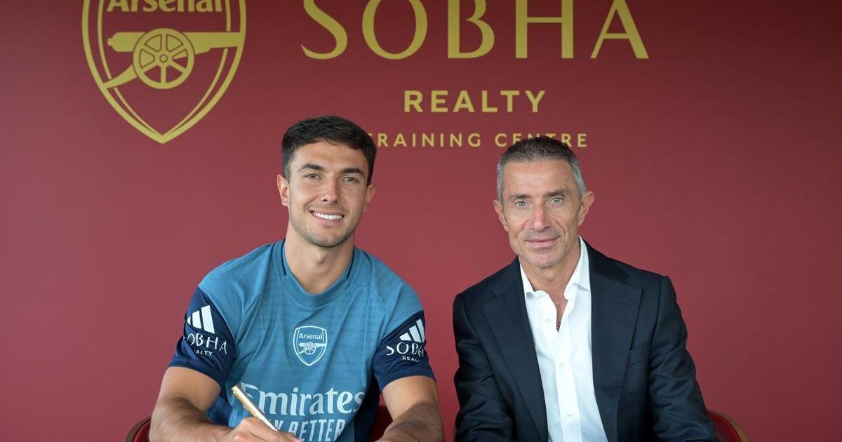 Martin Zubimendi firmando su nuevo contrato junto con Andrea Berta. X ARSENAL