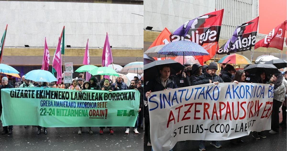 A la salida del CRL, los sindicatos del bloque que representa al 42% de la plantilla, señalaron que no descartan retomar la huelga si las patronales siguen “sin cumplir” lo comprometido, aunque puntualizaron que antes deben estudiar la situación. Asimismo, advirtieron de que “lo pactado y firmado se debe cumplir” y pidieron a la patronal que respete a los 9.000 trabajadores cumpliendo los acuerdos firmados y acatando las sentencias. En otra pancarta diferenciada, la portavoz de ELA (58% del sector), Miren Zubizarreta, volvió a abogar por “activar la vía sindical” y por la huelga si las patronales continúan actuando “de mala fe” y no cumplen lo acordado.