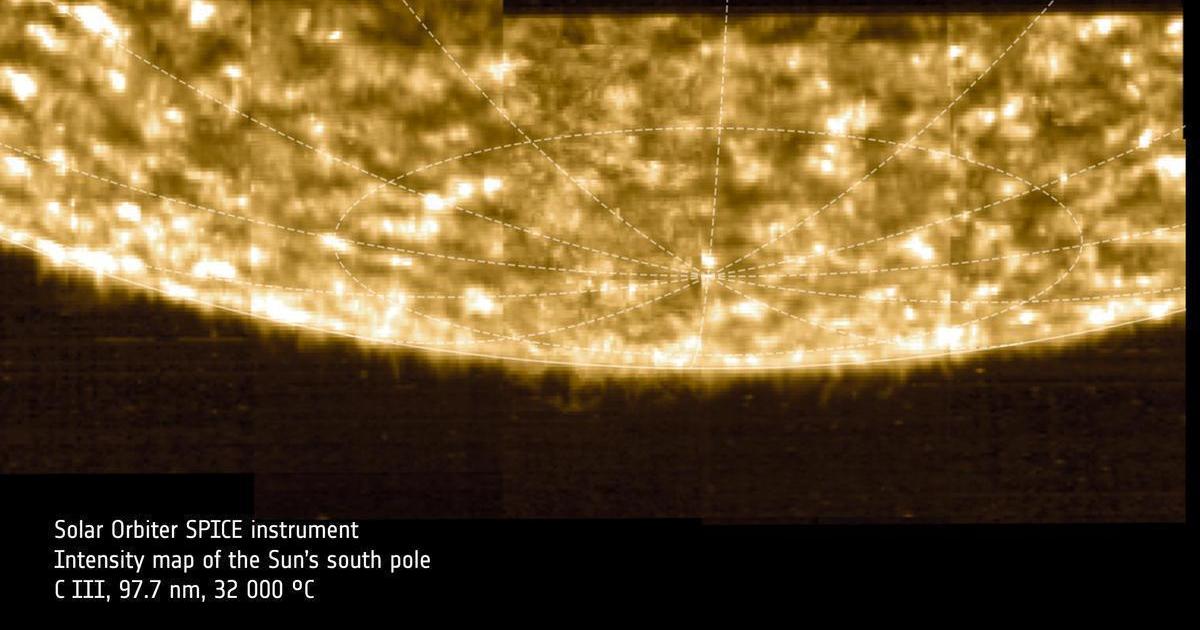 Imagen del polo sur del Sol captada por el instrumento científico SPICE.