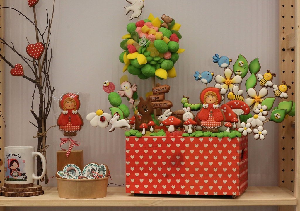 The Cookie Show no es una "tienda cualquiera", defiende, ya que también ofrece artículos de regalo que combinan con la decoración de las galletas: cajas de madera, caja-casa, carruseles que esconden galletas con forma de caballo, bodys de bebés, una taza, bolsos...
