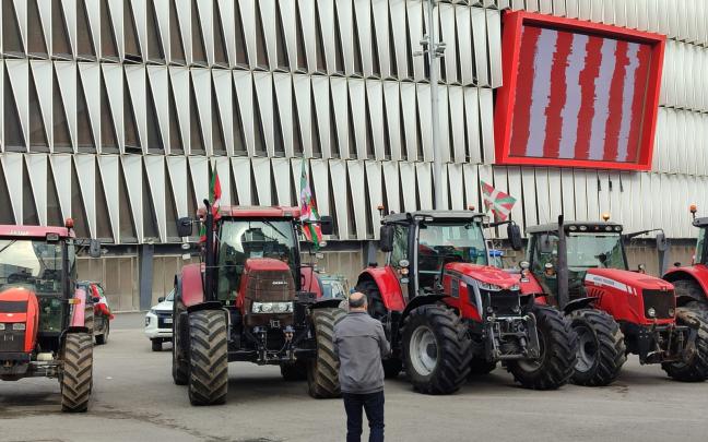 La tractorada de agricultores de Bizkaia, ha sido recibida en la Gran Vía de Bilbao, entre aplausos de la ciudadanía, después de hacer permanecido concentrados en la explanada de San Mamés, y tras haber llegado de diferentes comarcas del territorio, desde localidades que han servido como punto de encuentro: Karrantza, Gernika, Markina, Duranguesado, Mungia y Erandio.