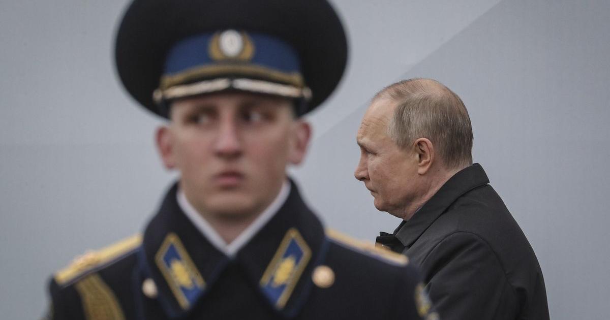 El presidente ruso Vladimir Putin pasa junto a un soldado