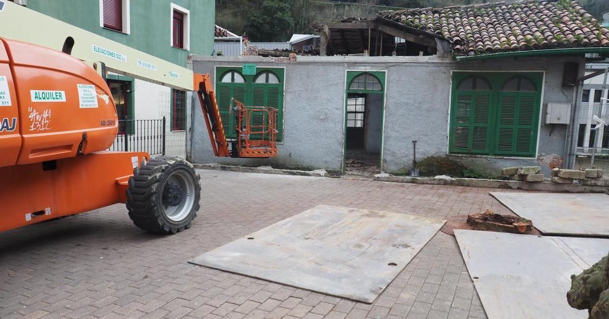 Las obras para derribar el edificio de la antigua carpintería de Kalebarren que posibilitará la construcción de un espacio con gradas que conectará la Plaza Zaharra de Soraluze con el río Deba ya están en marcha.