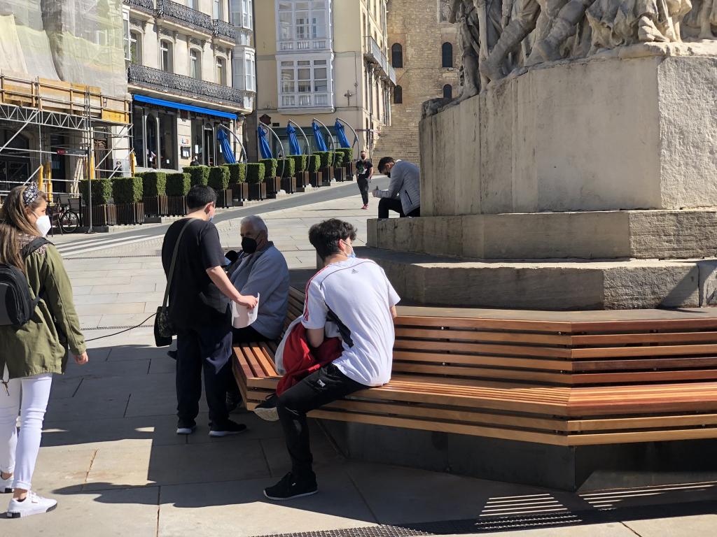 La Plaza de la Virgen Blanca luce desde este jueves su nuevo banco en el monumento de la Batalla de Vitoria.