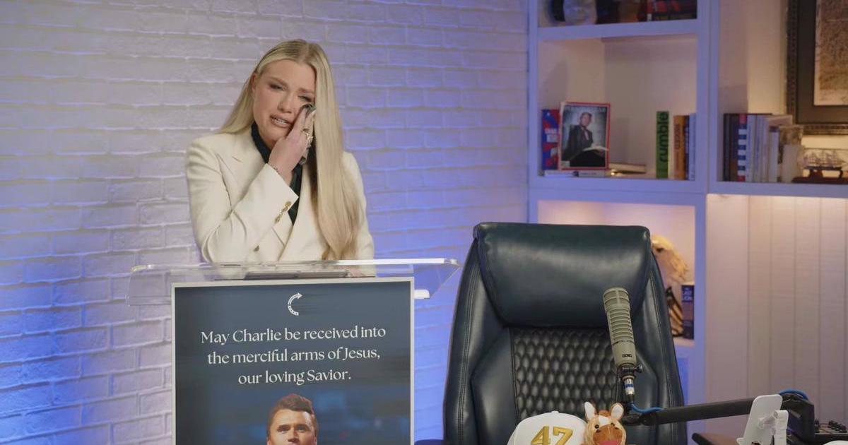El mensaje de la esposa de Kirk ha sido grabado desde el estudio desde el que el propio Kirk se dirigía al mundo a través de redes sociales con su podcast, hablando desde un atril con la frase "Que Charlie sea recibido por los misericordiosos brazos de Jesús, nuestro amoroso salvador".