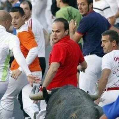 Teo Lázaro, en el centro de rojo, corriendo un encierro. "SIEMPRE CREÍ QUE SERÍA ÉL: ES UN DIGNO SUCESOR"