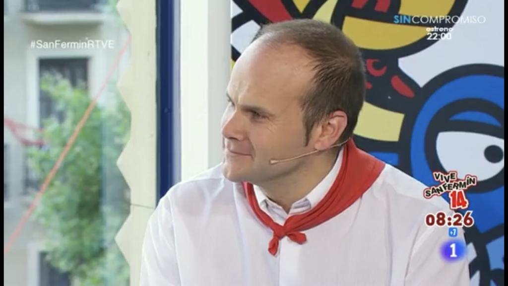 Teo Lázaro, invitado en una retransmisión de RTVE en los Sanfermines de 2014.