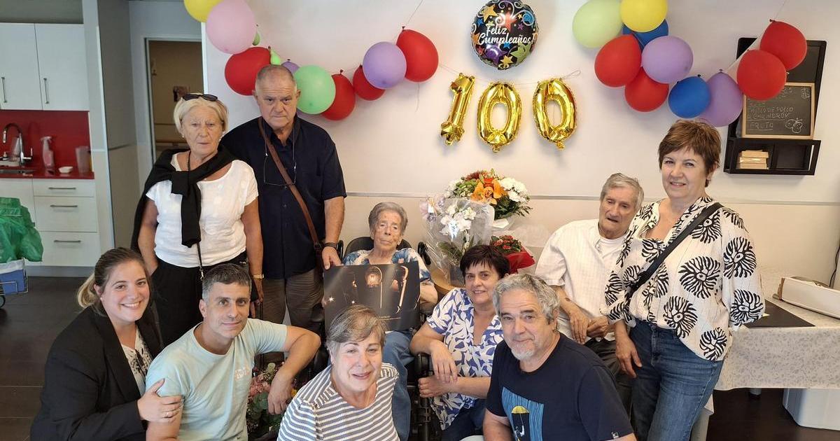 La zumarragarra Mertxe Aristegi Altzelai ha cumplido 100 años. El Ayuntamiento le ha regalado un ramo de flores y una litografía de la ermita de La Antigua, en nombre de todos los vecinos.
