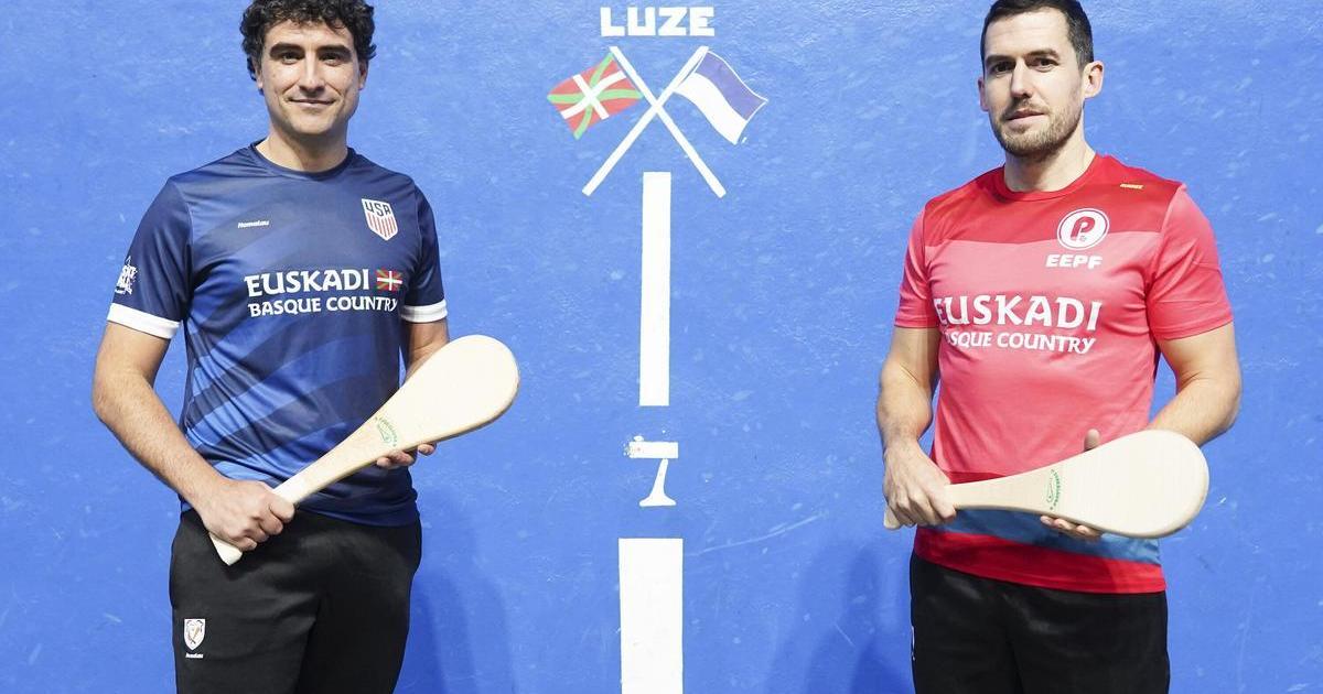 En imágenes: los mungiarras Iker Goirizelaia y Ander Landeta defenderán diferentes banderas en la modalidad de paleta cuero en la Liga de Naciones.