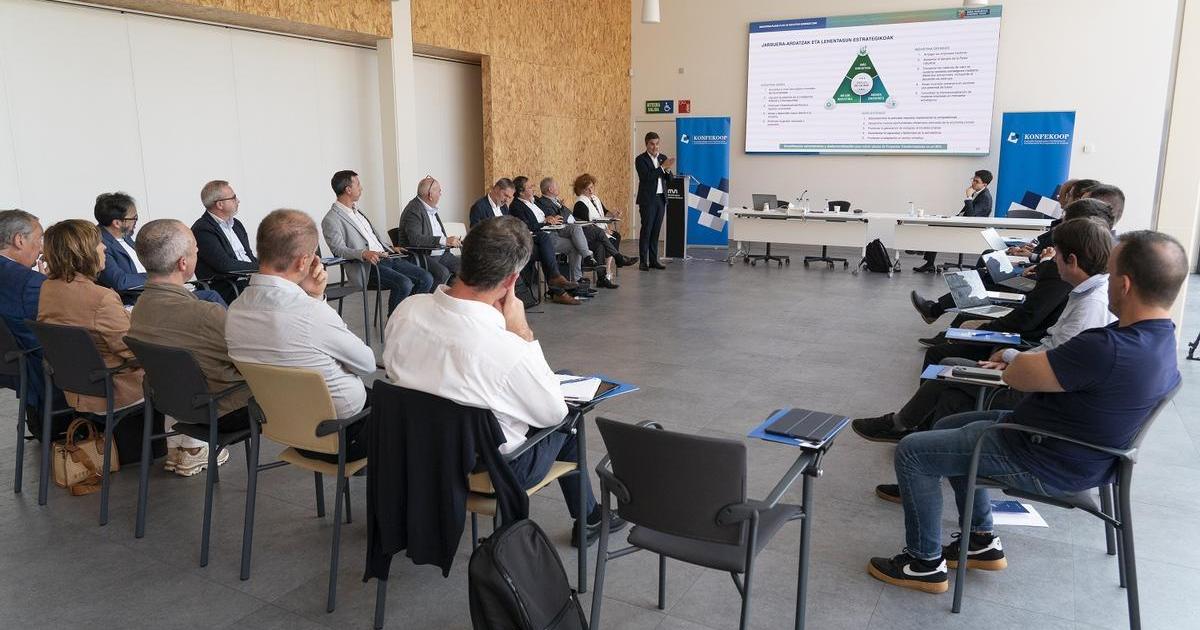 El Gobierno vasco y KONFEKOOP, la Confederación de Cooperativas de Euskadi, celebraron este miércoles en en Bilbao un encuentro con las principales cooperativas industriales vascas para la presentación del Plan de Industria Euskadi 2030, expuesto por el consejero de Industria, Transición Energética y Sostenibilidad, Mikel Jauregi.