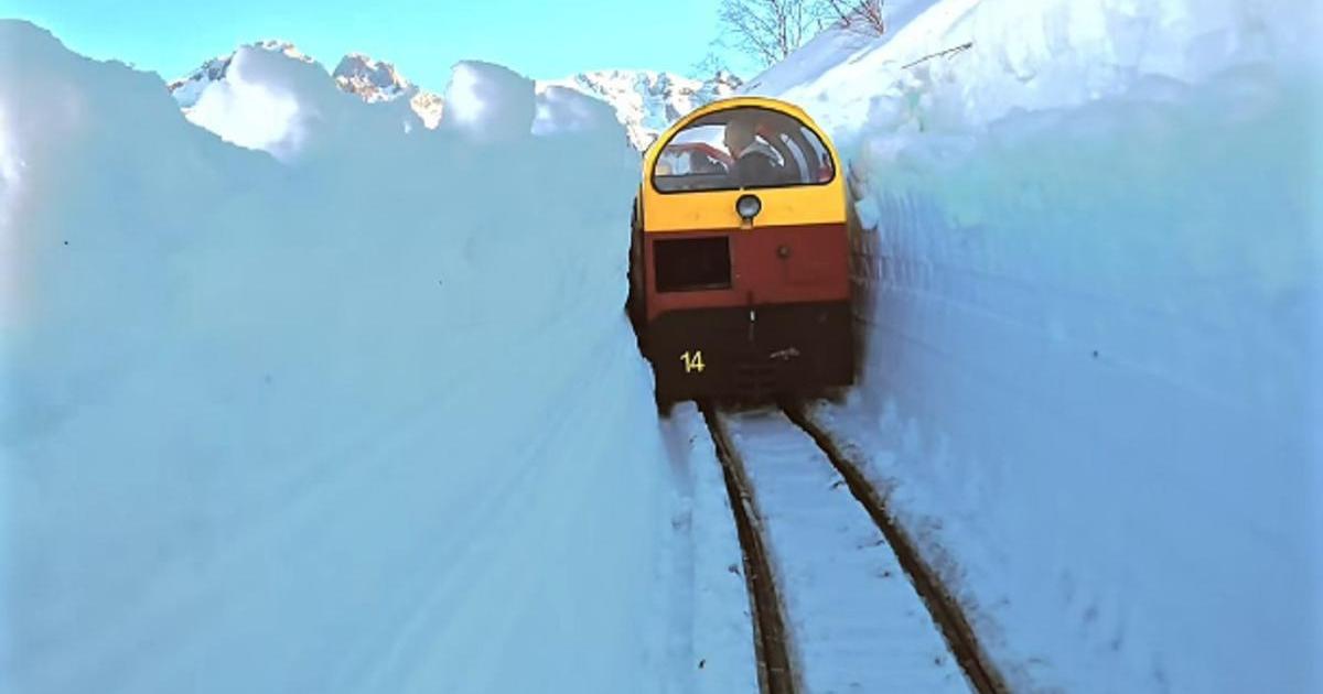 Eso nos ha regalado en los últimos días unas imágenes que se han vuelto virales en redes sociales: la vía convertida en un pasillo excavado en la nieve por el que se abre el paso el tren, como si fuera un rompehielos con ruedas, para despejar el camino de cara a la nueva temporada. Todo un espectáculo.
