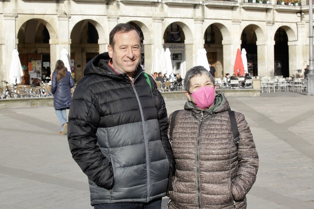 José Antonio Díez y Mar Gil, este jueves en la Plaza Nueva. Foto: Pilar Barco "La tengo en el bolsillo"