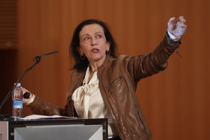 Marian Scheifler, socia directora de la consultora Sifdi, ha presentado el informe "El impacto de las Empresas Multinacionales en Navarra", elaborado por esta firma.