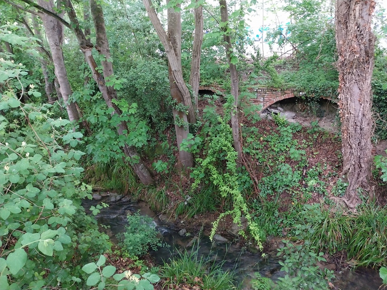 Este poste de piedra se ha conservado para poder recolocarlo en la senda peatonal que va a discurrir por esa zona. Se han mantenido también los arcos realizados en ladrillo de la antigua fábrica situada en el entorno. Por el contrario, se han demolido los muros que existían sobre esos mismos arcos y que fueron superpuestos. URA se ha encargado de llevar a cabo la demolición de eso muretes y de la recogida de los restos de escombros existentes en el entorno. El Ayuntamiento de Vitoria-Gasteiz, por su parte, ha realizado la gestión del propio escombro, así como la limpieza de los residuos sólidos urbanos localizados en la zona.