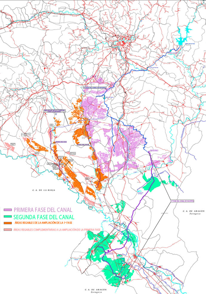 La segunda fase supone "garantía de agua de calidad para más de las 70.000 personas que viven en la Ribera". Regará hasta más de 22.500 hectáreas; dotará de un factor de producción indispenable como el agua para la industria y para la modernización de las estructuras agrarias; y el canal se convierte en un blindaje de la Comunidad Foral ante el cambio climático.
