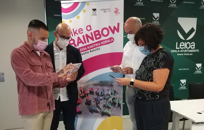 El nuevo disco de Leioa Kantika Korala echa a volar. Se llama Like a Rainbow (como un arcoíris) y es todo un himno a la alegría. Es, por lo tanto, el ADN colorista y enérgico de esta formación infantil y juvenil volcada a un CD, esa melancólica y aún superviviente reproducción de música (pero el arcoíris también saldrá en plataformas como iTunes o Spotify). La presentación de este trabajo, que verá la luz el próximo lunes, tuvo lugar ayer y corrió a cargo del alcalde de Leioa, Iban Rodríguez; la directora de Cultura de la Diputación Foral de Bizkaia, Begoña de Ibarra; el director de Kantika, Basilio Astúlez, y el compositor pasaitarra Josu Elberdin.