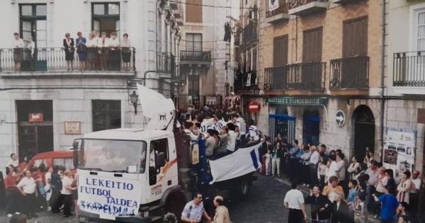Klubaren historiako mugarri nagusietako bat izan zen lehen taldearen lehen igoera, 1998-99 denboraldian. Herrian sekulako ospakizuna izan zen: taldea kamioi batean igo eta herritik zehar ibili zen jendearekin ospatzen; Udaletxeak harrera egin zien eta plaza bete zen. Momentu hura klubaren historiako altxorretako bat da, komunitatearen eta taldearen arteko batasuna agerian utzi zuena.