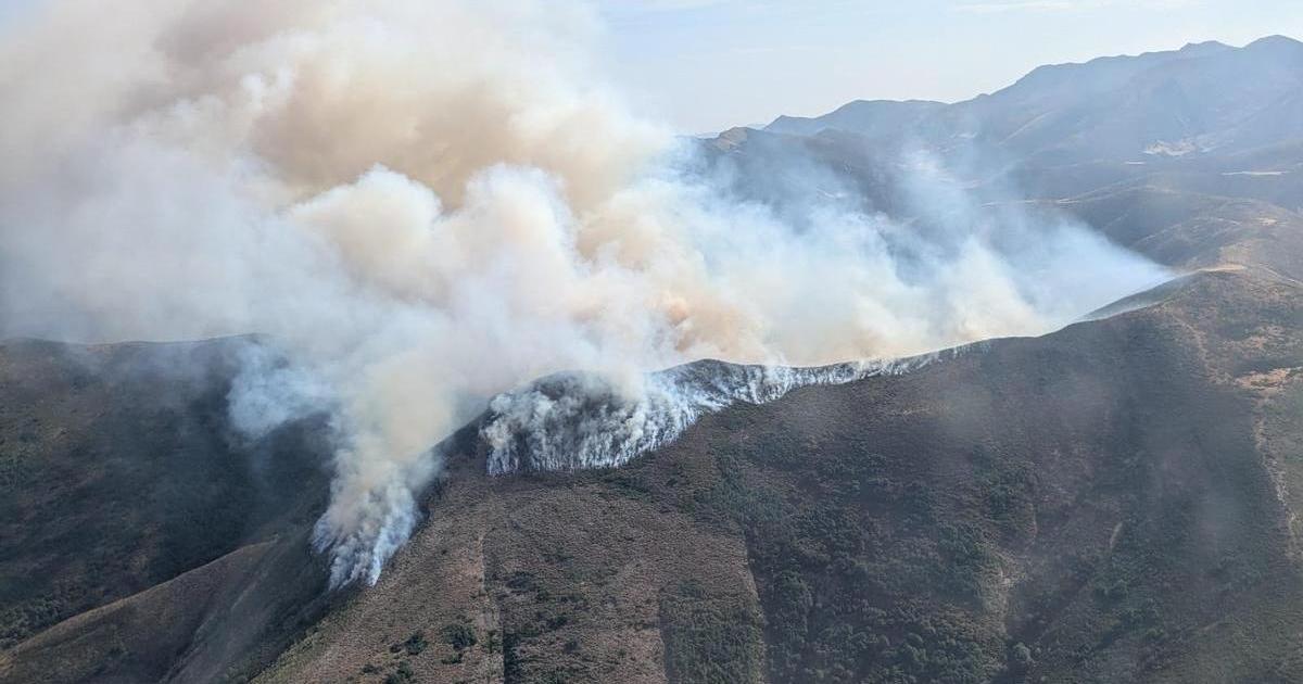 Se trata de un incendio que sigue activo en la parte más inferior del frente sur que se descuelga hacia el valle del este y presenta riesgo de avance tanto para el límite con Zamora como en dirección hacia de La Baña.