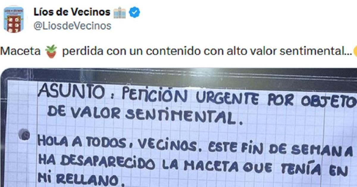 El último caso llamativo lo ha revelado la popular cuenta de X Líos de Vecinos, que se dedica a compartir situaciones curiosas de todo tipo, buenas y malas, que ocurren en las comunidades de vecinos. Y el robo perpetrado ha dejado devastada a una vecina, habida cuenta del valor personal que tenía para ella ese objeto.