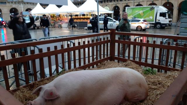 La cerda Xixili en la Plaza de la Constitución de Donostia