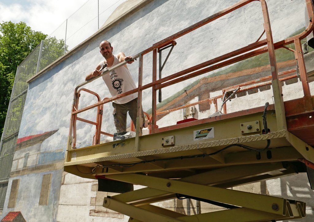 Después de realizar las veladuras, lo siguiente fue pintar los detalles, a brocha. "No me gusta el spray, todo lo pinto al agua", observa. Y lo dice desde la experiencia, después de realizar varios murales en Bortziriak y Granada. No obstante, era la primera vez que realizaba un trampantojo.