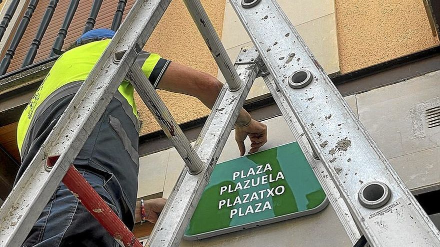 En total, explicó, hay en Lodosa 78 calles, plazas y avenidas por lo que los miembros de la brigada cambiarán y colocarán a lo largo de estas semanas 154 placas que siguen el estilo estético de las actuales: letras blancas sobre fondo verde.