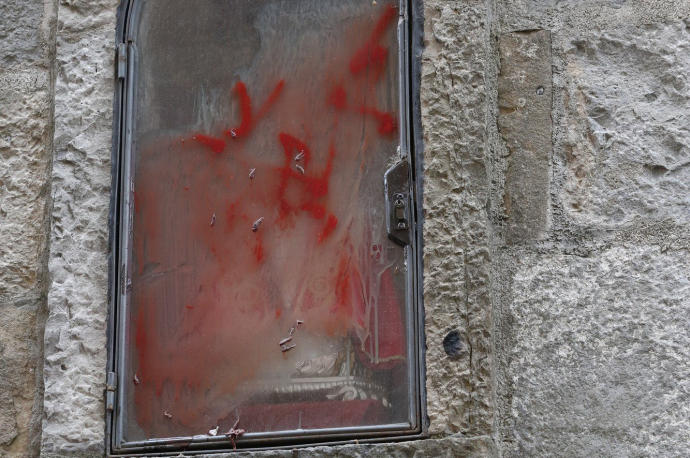 Operarios municipales han acudido a las pocas horas para limpiar la pintura roja. Lamentablemente no es la primera vez que ocurre algo así con la hornacina, en octubre de 2013, cuando apedrearon el cristal y la imagen tuvo que ser retirada temporalmente. También entonces, en el muro en el que se ubica la hornacina apareció escrito un mensaje contra el proyecto de museo de los Sanfermines.