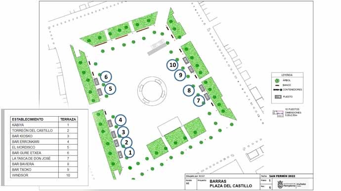 El bar Kayak ha renunciado antes del sorteo. La iniciativa municipal consiste en la utilización del enclave más importante de la ciudad, con una propuesta de "colaboración público-privada". Así, el área de Seguridad Ciudadana argumenta en el condicionado que, dentro de los "cambios que este año 2022 se van a producir" en la programación de los Sanfermines, "uno de ellos alcanza la Plaza del Castillo", y la idea es "modificar el espacio festivo, organizando conciertos de tarde y noche de Djs" con la "posibilidad de que la hostelería se introduzca en la propia plaza para conseguir un espacio agradable para el público", lo que da a entender que el objetivo es acabar con el botellón que, años atrás, se había adueñado de este espacio.