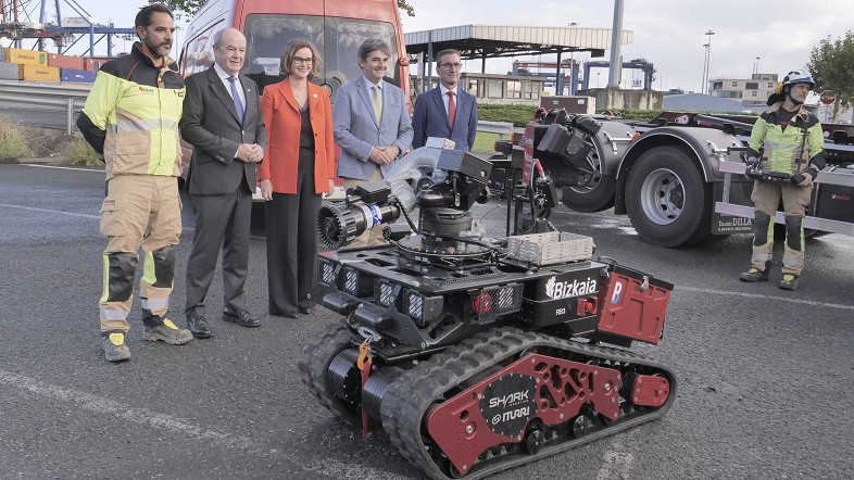 La Diputada General de Bizkaia, Elixabete Etxanobe, ha recibido del presidente de la Autoridad Portuaria de Bilbao, Ricardo Barkala, un robot eléctrico multifunción de última generación. Este innovador equipamiento será utilizado por los miembros del Servicio Foral de Prevención, Extinción de Incendios y Salvamento de la Diputación Foral de Bizkaia, en virtud del acuerdo de colaboración suscrito entre ambas entidades.