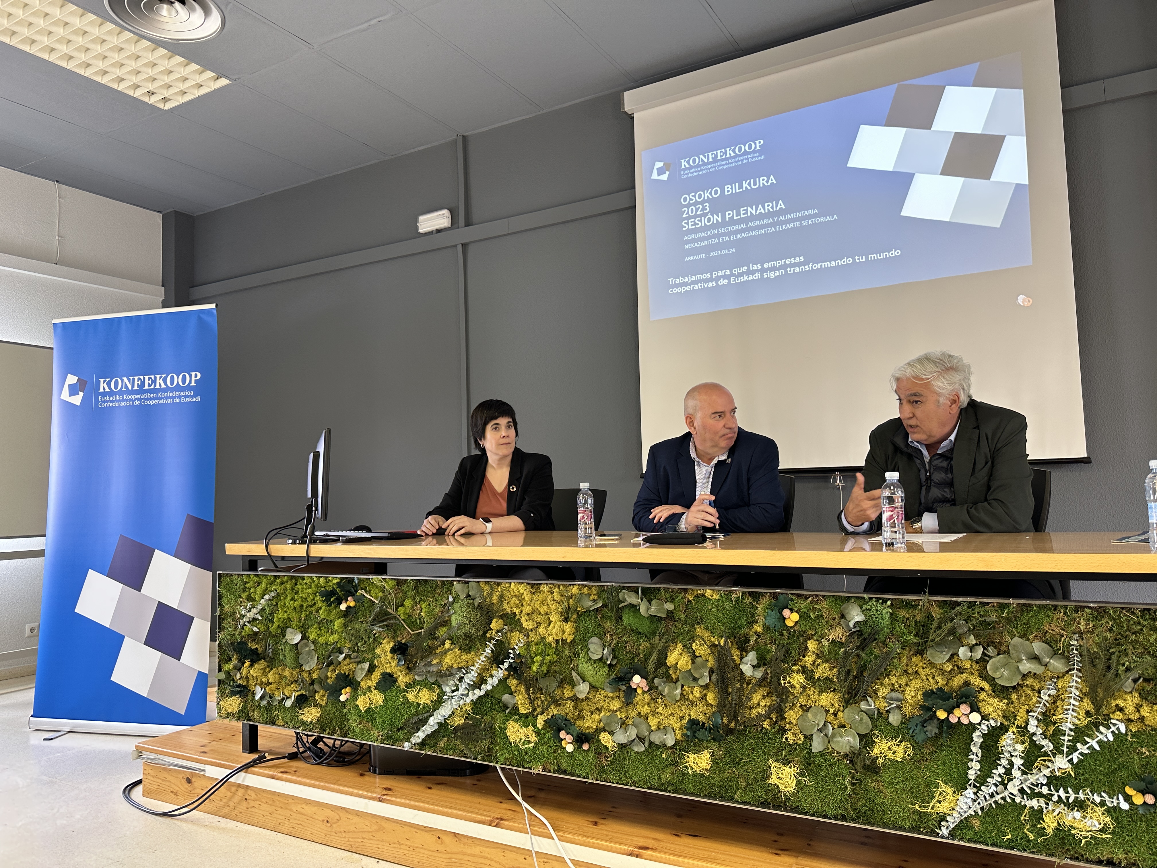 Pablo Durana, coordinador de la sectorial agroalimentaria de Konfekoop expone las conclusiones de la sesión plenaria de la agrupación de cooperativas agrarias que se celebra anualmente. Además las cooperativas que representan al Consejo Rector este 2023 son: Garlan, Lorra y Kaiku.